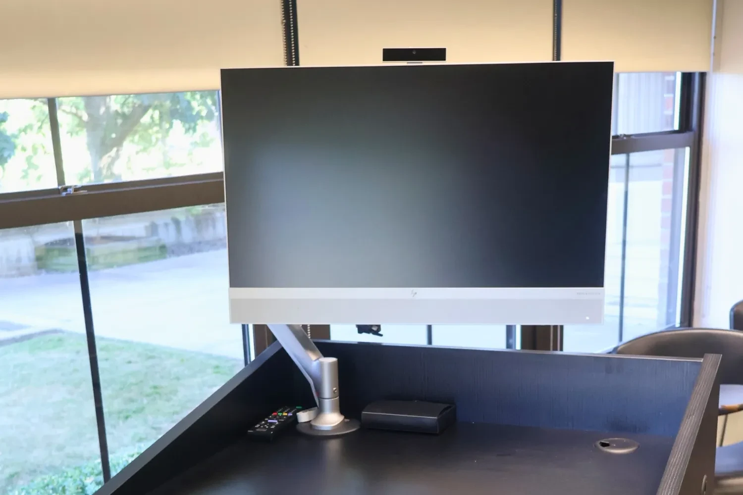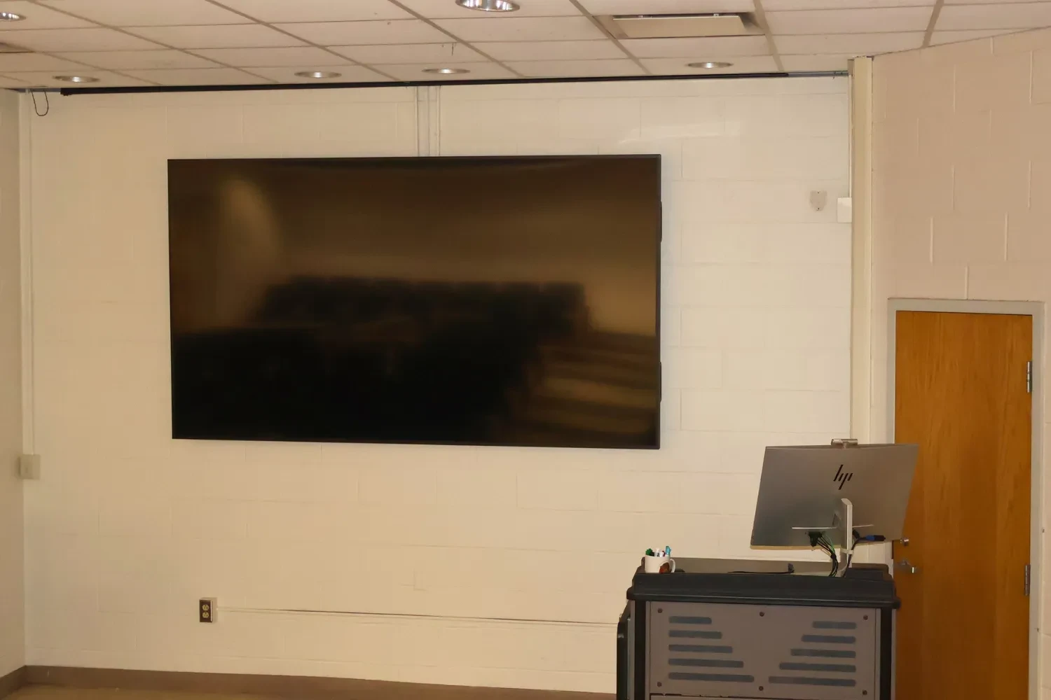 Across the two buildings, 25 classrooms were transformed with technology tailored to meet the needs of distance learning, hybrid instruction, and traditional lectures. Each space was equipped with Sony 75” commercial displays and ViewSonic interactive displays, giving faculty reliable visuals and interactive teaching tools. To ensure a consistent experience for instructors, Fusion standardized lectern setups with HP All-in-One PCs, articulating mounts, and wireless peripherals.